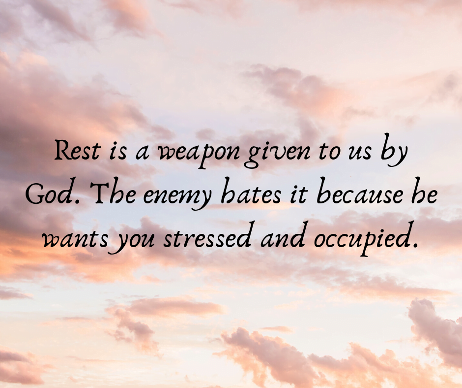 Rest is a weapon give to us by God. The enemy hates it because he wants us stressed and occupied!