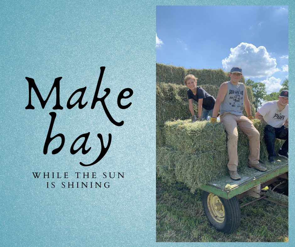 “Make hay while the sun is shining” is a phrase I’ve heard about for years. I have a very clear picture of what that means because of the farm life I’ve had the privilege of growing up with.