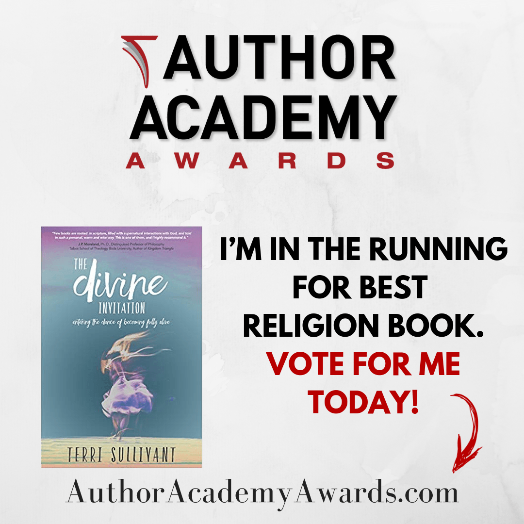 My book, The Divine Invitation: Entering the Dance of Becoming Fully Alive, has been nominated for an award! I would really appreciate it if you would take a minute to vote. Here’s how: Click on this link https://authoracademyawards.com/vote2019/ and scroll through to page 11, the Religion section, then click on my book cover. That will do it! You can read about my book or buy it here. It would mean so much to have your vote! Polls close in a couple of weeks so today would be the best time to do it. Thanks so much!