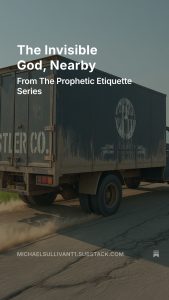 The invisible God is not far away. He is “hiding in plain sight,” waiting for us to use the eyes of our hearts to perceive His nearness. And sometimes, in His mercy, He scrawls a message on the back of a dirty truck just so we won’t forget.