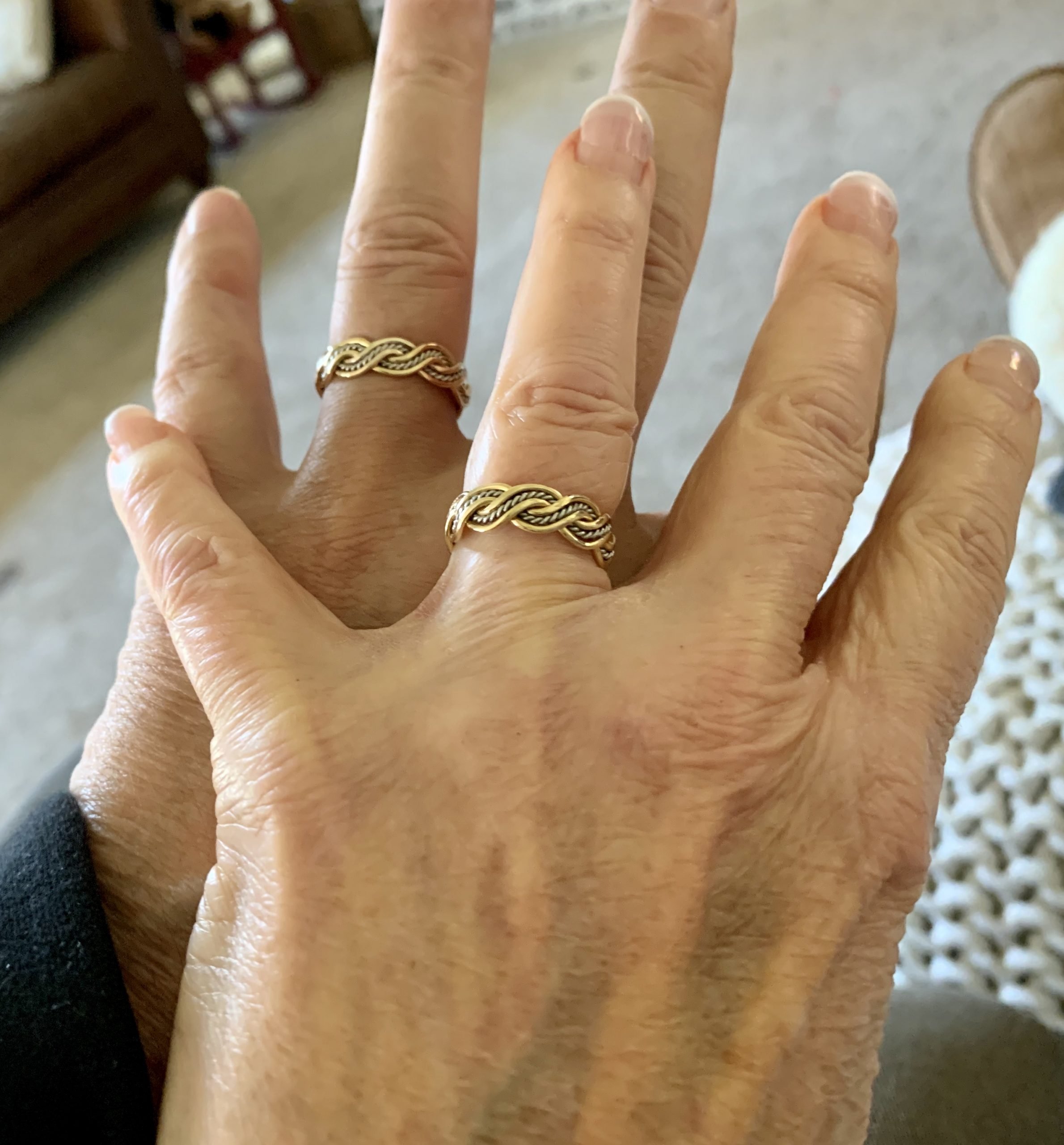 The ring he gave me was a 3-cord braid with 2 gold and 1 platinum strand, representing this unity that has been building in our lives for many years. I ordered him a ring just like mine this fall and it came today – you can see it pictured in the image I’ve used today.